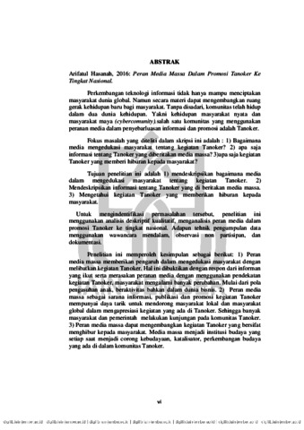 Arifatul Hasanah, 2016: Peran Media Massa Dalam Promosi Tanoker Ke