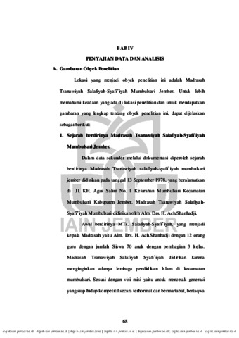 Tsanawiyah Salafiyah-Syafi’ iyah Mumbulsari Jember.